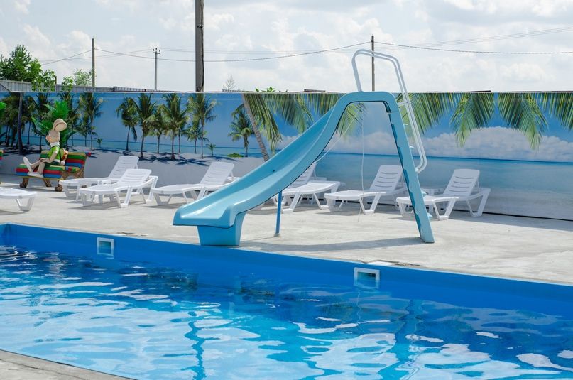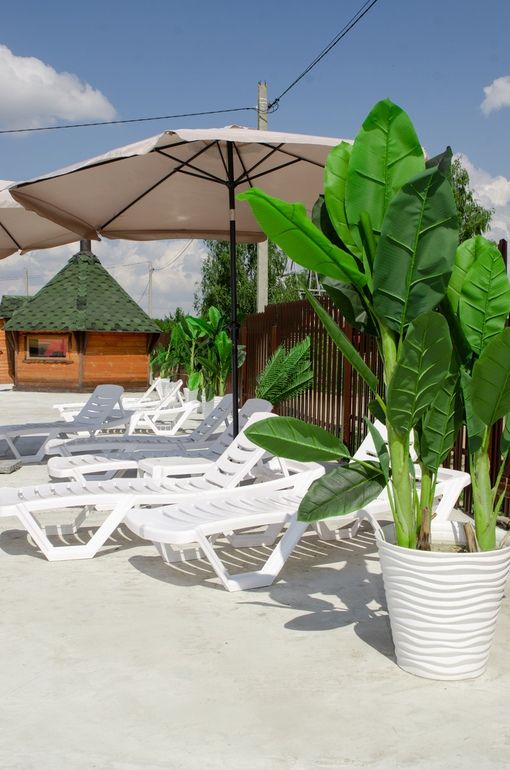 Тёплое здание с баней, сауной с розовой солью, двумя раздевалками с ящичками и двумя санузлами с душем. На улице бассейн подогреваемый круглогодичный 25 м, детский бассейн и чаны с холодной, теплой и горячей (аква-беседка) водой.